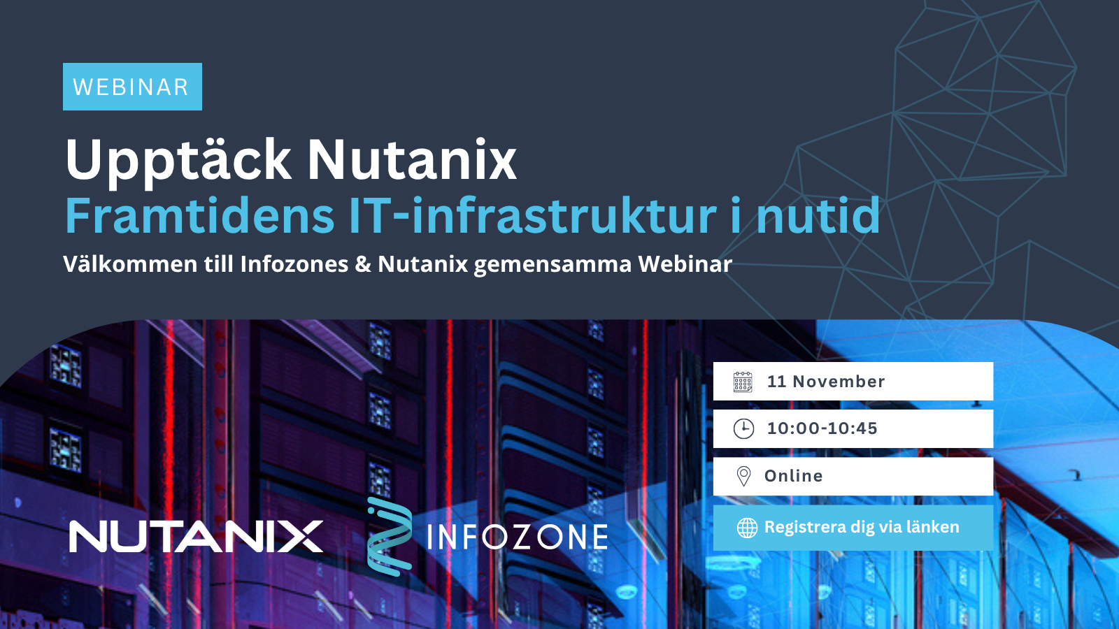Upptäck Nutanix - framtidens IT-infrastruktur i nutidVill du förenkla din IT-drift, öka flexibiliteten och samtidigt sänka kostnaderna? Då är detta webinar något för dig.